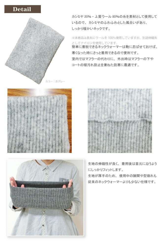 カシミヤウールネックウォーマーはカシミヤに上質ウールを使用した、ふわふわと柔らかく、とっても暖かなネックウォーマーです。