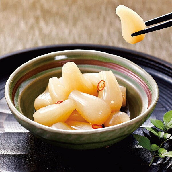 蜂蜜らっきょ漬 国産らっきょうを使用し、シャキっとした歯ざわりと、甘酸っぱさで食が進みます。