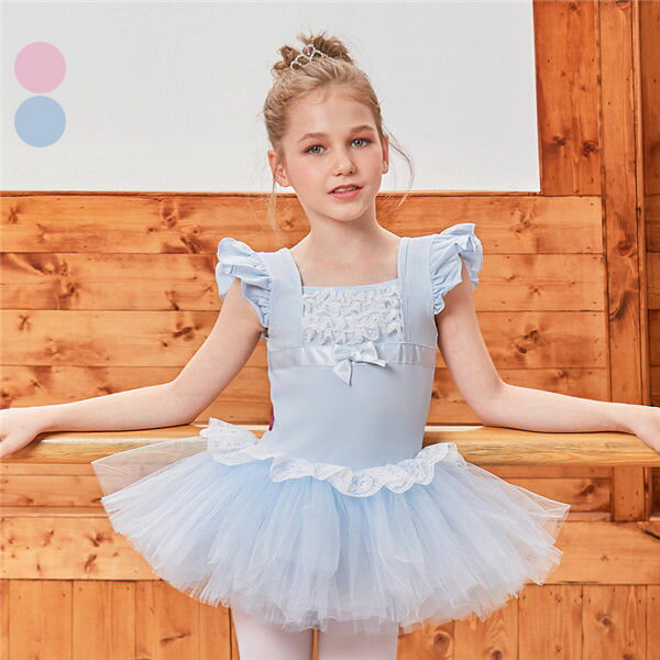 【バレエ レオタード 子供 キッズ ジュニア 女の子 大人 新体操 ダンス衣装 レッスンウエア 練習着】【かわいい おしゃれ 清楚 上品 フェアリー フェミニン エレガント シック フリル】【発表会 ステージ衣装 舞台】【パープル ピンク ブルー スモーキーピンク 110-150cm】