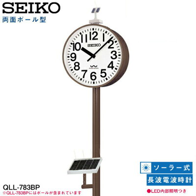 システムクロック QLL-783BP セイコークロック SEIKO 両面ポール型 長波電波時計 LED内部照明 ソーラー式 電波アナログ時計 ポリカーポネート 【お取り寄せ】